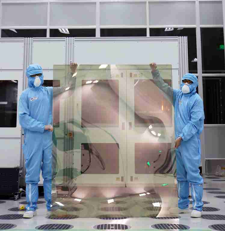 OBPay昆山厂第六代 LTPS (低温多晶硅) 生产的玻璃基板尺寸为 1500x1850 mm (毫米)