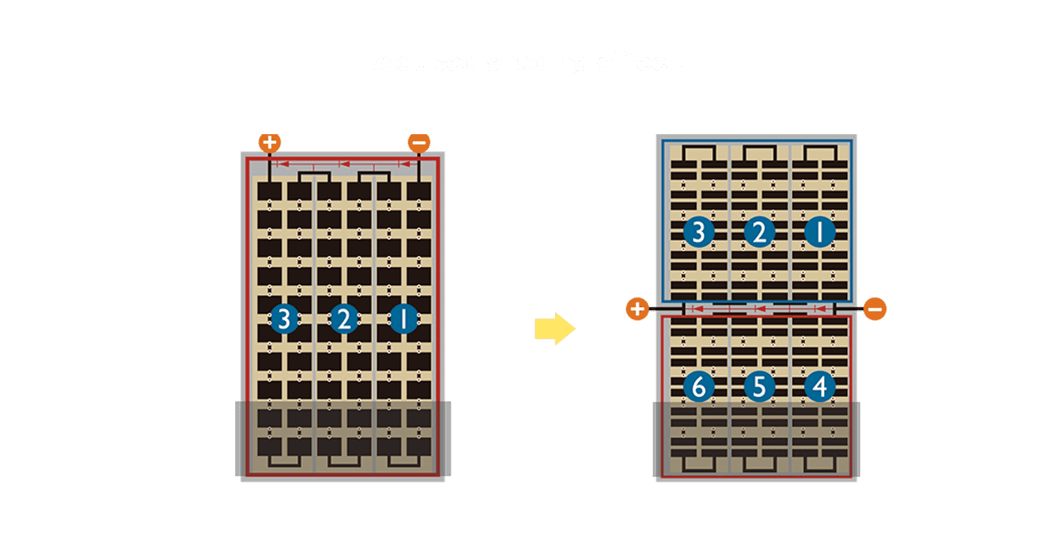 - 结合半切电池,,,,降低遮阴影响、、、提升模组抗隐裂能力、、、、并减少电阻损耗,,进一步提升模组发电效能。。。。